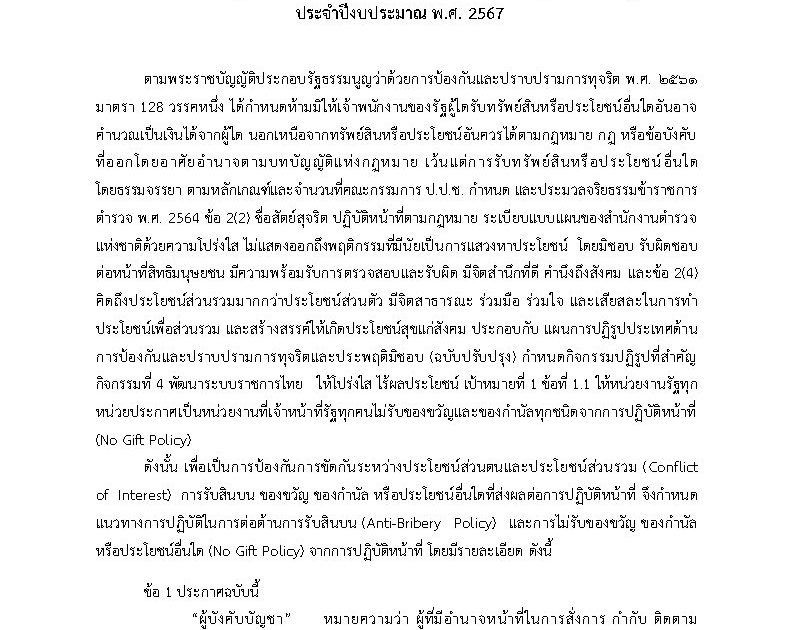 ประกาศนโยบายต่อต้านการรับสินบน(Anti-Bribery Policy)และการไม่รับของขวัญของกำนัล หรือประโยชน์อื่นใด (No Gift Policy) จากการปฏิบัติหน้าที่